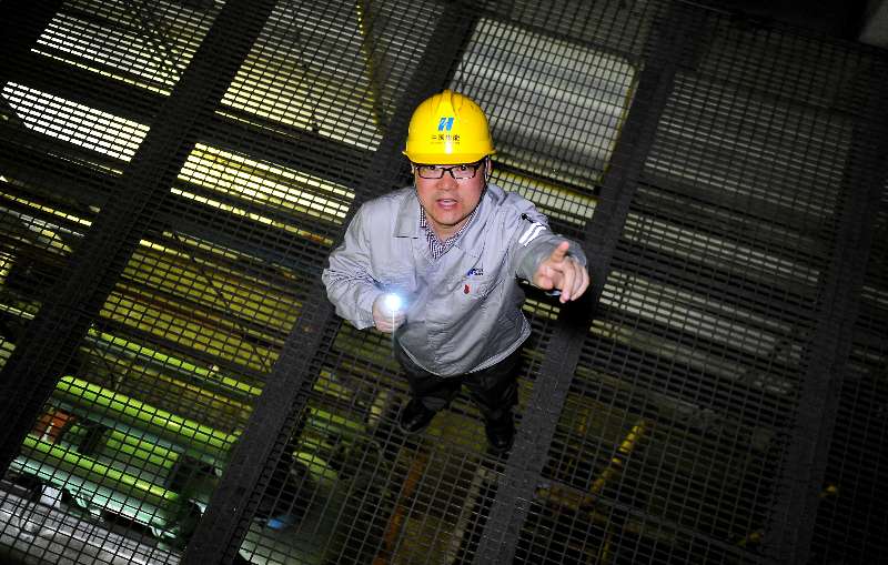 每天早上7点半,张军已经带上安全帽,拿着手电筒对运行设备进行巡查,这是他每天例行的一项工作。整个巡查时间最快也需要半小时,主要是了解设备的各项运行参数,确保设备运行正常。风机轴承温度应该在四五十度左右,主蒸汽温度应该为538度,设备重要的运行参数张军都能了熟于心,在这背后是张军21年一线工作的积累。